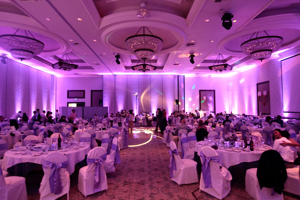 RCC Events provides Event Lighting Rentals, trussing, theatrical and stage event lighting rentals for corporate events, weddings, trade shows, and weddings. We rent either complete stage lighting systems with or without delivery. We have a very large inventory of high-quality incandescent and LED which allow us to work with any size wedding, corporate party/event, concert, or other event where ambient, mood, or up-lighting services are needed. Below are just a few examples of how ambient/up-lighting can dramatically transform a dull room or area into a work of art! Based on the venue/event location and layout, each package is custom built to your exact needs.